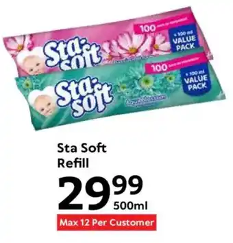 This special is available in various stores, view all products to get the cheapest Sta Soft Refill. If you'd like to find out whether this product has a bigger discount in another store, check the category 'Grocery stores'. You may also find these specials interesting: Sta Soft Refill, STA-SOFT Fabric Softener Refill & STA-SOFT FABRIC SOFTENER REFILL.