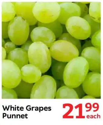 This special is available in various stores, view all products to get the cheapest White Grapes Punnet. If you'd like to find out whether this product has a bigger discount in another store, check the category 'Grocery stores'. You may also find these specials interesting: Red Grapes Punnet, White Grapes & White Grape Punnet.
