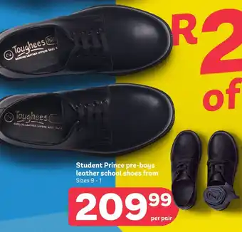 This special is available in various stores, view all products to get the cheapest Student prince pre-boys leather school shoes. If you'd like to find out whether this product has a bigger discount in another store, check the category 'Clothes & Shoes'. You may also find these specials interesting: BOYS' LACE-UP SCHOOL SHOES, Student prince jerseys & Student Prince Skirts.