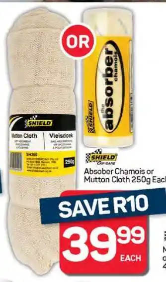 This special is available in various stores, view all products to get the cheapest Absober Chamois or Mutton Cloth 250g. If you'd like to find out whether this product has a bigger discount in another store, check the category 'Grocery stores'. You may also find these specials interesting: Shield Absorber Chamois, Mumbai mutton sausages & Alnet 40% Shade Cloth.