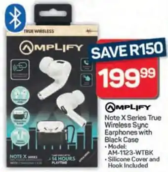 The Amplify Note X Series True Wireless Sync Earphones with Black Case is now available with a discount at Pick n Pay Hypermarket. On this page, you’ll find everything about the current price, promotion conditions, and how long the offer is valid. Also explore other offers and promotions for Amplify Note X Series True Wireless Sync Earphones with Black Case to make a smart and cost-effective choice.