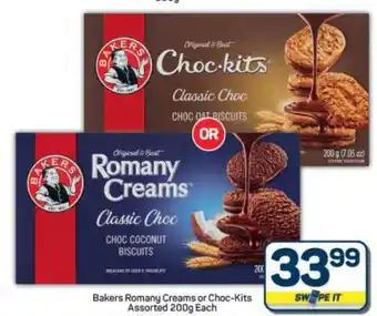 This special is available in various stores, view all products to get the cheapest Bakers Romany Creams or Choc-kits. If you'd like to find out whether this product has a bigger discount in another store, check the category 'Grocery stores'. You may also find these specials interesting: Bakers romany creams or choc-kits, Bakers Romany Creams or Choc-Kits Biscuits Asstd. & Bakers Choc-kits/ Romany Creams Biscuits All Variants.
