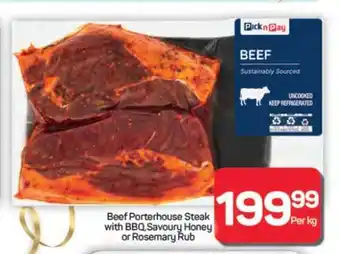 The price of Beef Porterhouse Steak can be found at the top of the page, together with the dates during which the special is available. You can also check the price in the current Pick n Pay Hypermarket catalogue or on the Pick n Pay Hypermarket website. Promotional offers assure you of buying Pick n Pay Hypermarket products at the lowest price.