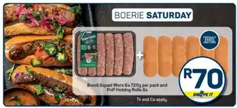 Bomb Squad Wors 6s 720g per pack and PnP Hotdog Rolls 6s Discount at Pick n Pay Hypermarket