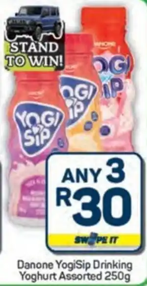 This special is available in various stores, view all products to get the cheapest Danone YogiSip Drinking Yoghurt Assorted. If you'd like to find out whether this product has a bigger discount in another store, check the category 'Grocery stores'. You may also find these specials interesting: Danone Yogisip Drinking Yoghurt Assorted 250g, Danone Yogi Sip Flavoured Drinking Yoghurt Asstd. & Danone Yogi Sip Drinking Yoghurt All Variants.