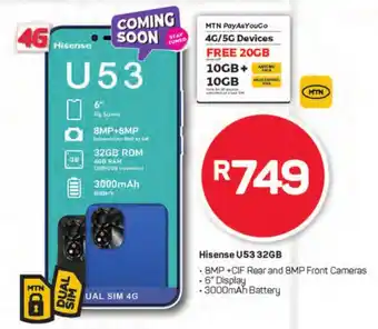The Hisense U53 32GB is now available with a discount at Pick n Pay Hypermarket. On this page, you’ll find everything about the current price, promotion conditions, and how long the offer is valid. Also explore other offers and promotions for Hisense U53 32GB to make a smart and cost-effective choice.