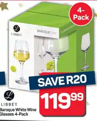 Now on special at Pick n Pay Hypermarket: Libbey Baroque White Wine Glasses 4-Pack ✅ Valid from 15-12 to 26-12.