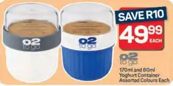 O2 to go Yoghurt Container Assorted Colours offers and online specials, directly from Pick n Pay Hypermarket