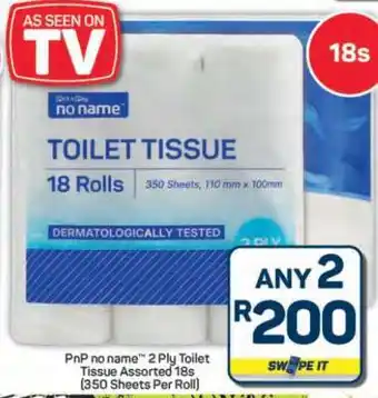 PnP no name 2 Ply Toilet Tissue Assorted 18s Offer at Pick n Pay Hypermarket