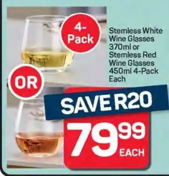 This Stemless Wine Glasses is currently available as part of a special promotion at Pick n Pay Hypermarket. Be sure to check the current promotions filled with competitive prices and deals. You can order Stemless Wine Glasses online via Pick n Pay Hypermarket website or get it at the best available price. Cataloguespecials.co.za collects the most relevant Stemless Wine Glasses offers and specials for you. Want to be notified first? Click the bell icon to receive a free alert when the product is part of a new promotion or available again.