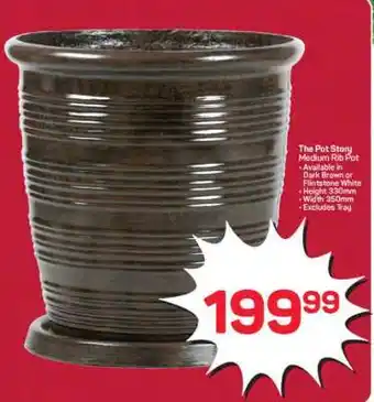 This special is available in various stores, view all products to get the cheapest The Pot Story Medium Rib Pot. If you'd like to find out whether this product has a bigger discount in another store, check the category 'Grocery stores'. You may also find these specials interesting: The Pot Story Angolan Pot Large, Medium Acapulco Flower Pot & Flora 120mm Calandiva With Pot 657761.