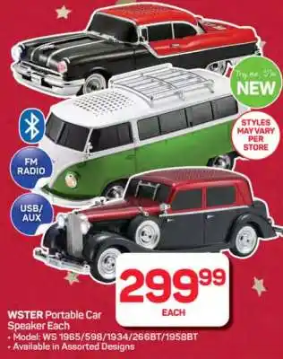 Now on special at Pick n Pay Hypermarket: WSTER Portable Car Speaker ✅ Valid from 15-12 to 26-12.