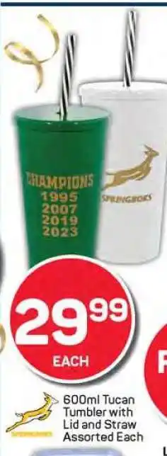 600ml Tucan Tumbler with Lid and Straw Assorted Each promotion at Pick n Pay