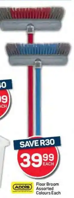 This special is available in various stores, view all products to get the cheapest ADDIS Floor Broom. If you'd like to find out whether this product has a bigger discount in another store, check the category 'Grocery stores'. You may also find these specials interesting: Supergrip Floor Broom, ADDIS Platform Broom & SPAR goodliving Floor Broom.