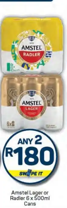 Amstel Lager or Radler 6 x 500ml Cans promotion at Pick n Pay