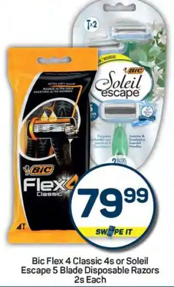Bic Flex 4 Classic 4s or Soleil Escape 5 Blade Disposable Razors 2s Each Discount at Pick n Pay