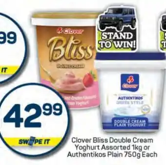 Clover Bliss Double Cream Yoghurt Assorted 1kg or Authentikos Plain 750g Each Discount at Pick n Pay