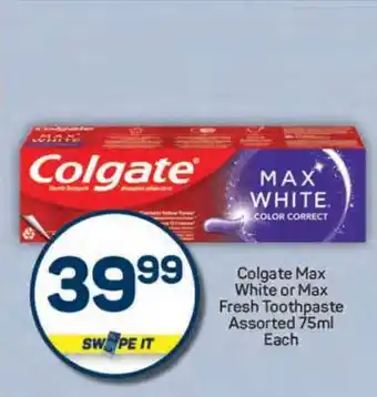 Colgate Max White or Max Fresh Toothpaste Assorted 75ml Each offers and online specials, directly from Pick n Pay