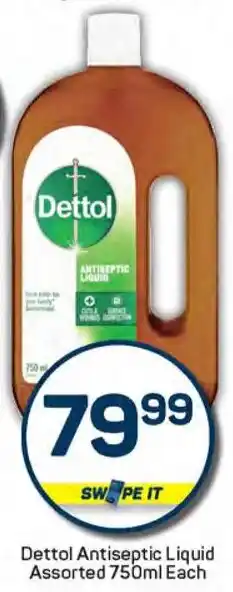 This special is available in various stores, view all products to get the cheapest Dettol Antiseptic Liquid Assorted. If you'd like to find out whether this product has a bigger discount in another store, check the category 'Grocery stores'. You may also find these specials interesting: Dettol Antiseptic Liquid Assorted, Dettol Antiseptic Liquid Assorted-750ml Each & DETTOL ANTISEPTIC LIQUID 12x50ml.
