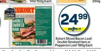 Eskort Sliced Bacon Loaf, Double Smoked Ham or Pepperoni loaf 180g Each Offer at Pick n Pay