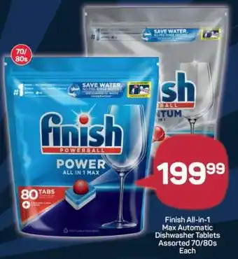 This special is available in various stores, view all products to get the cheapest Finish All-in-1 Max Automatic Dishwasher Tablets Assorted 70/80s Each. If you'd like to find out whether this product has a bigger discount in another store, check the category 'Grocery stores'. You may also find these specials interesting: Finish Dishwasher Tablets, Finish All-in-One Auto Dishwasher Tablets & Finish Quantum Dishwasher Tablets.