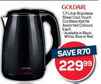 This special is available in various stores, view all products to get the cheapest GOLDAIR. If you'd like to find out whether this product has a bigger discount in another store, check the category 'Grocery stores'. You may also find these specials interesting: Goldair Dryer, Goldair air cooler & Goldair 250mm Box Fan (53948).