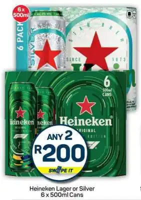 Heineken Lager or Silver 6 x 500ml Cans promotion at Pick n Pay