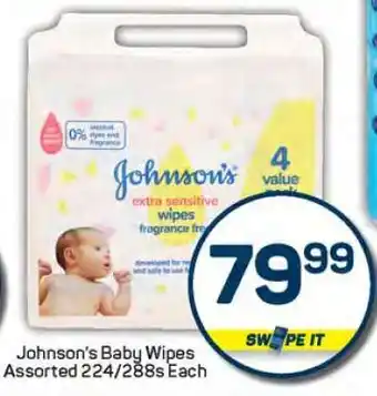 Johnson's Baby Wipes Assorted 224/288s Each promotion at Pick n Pay