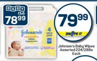 Johnson’s Baby Wipes Assorted 224/288s promotion at Pick n Pay