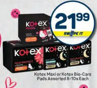 Kotex Maxi or Kotex Bio-Care Pads Assorted 8-10s Each Discount at Pick n Pay