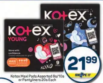 Kotex Maxi Pads Assorted 8s/10s or Pantyliners 20s Each promotion at Pick n Pay