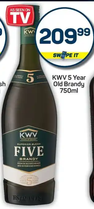 The KWV 5-Year-Old Brandy 750ml is now available with a discount at Pick n Pay. On this page, you’ll find everything about the current price, promotion conditions, and how long the offer is valid. Also explore other offers and promotions for KWV 5-Year-Old Brandy 750ml to make a smart and cost-effective choice.