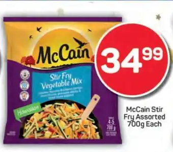 This special is available in various stores, view all products to get the cheapest McCain Stir Fry Assorted. If you'd like to find out whether this product has a bigger discount in another store, check the category 'Grocery stores'. You may also find these specials interesting: McCain Stir Fry Assorted 700g, McCain Assorted Stir Fry & McCain Stir Fry Vegetable Mix.