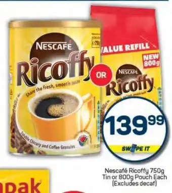 Nescafé Ricoffy 750g Tin or 800g Pouch Each