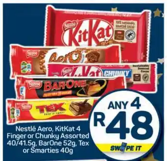 Nestlé Aero, KitKat 4 Finger or Chunky Assorted, BarOne, Tex or Smarties promotion at Pick n Pay