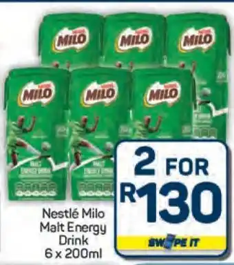 Nestlé Milo Malt Energy Drink 6 x 200ml offers and online specials, directly from Pick n Pay