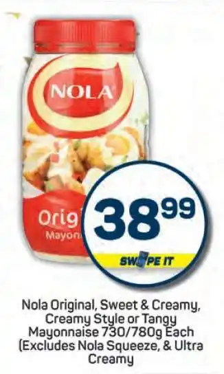Nola Original, Sweet & Creamy, Creamy Style or Tangy Mayonnaise Discount at Pick n Pay