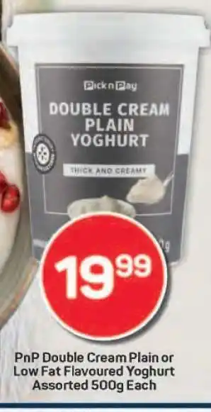 PnP Double Cream Plain or Low Fat Flavoured Yoghurt Assorted 500g Each promotion at Pick n Pay