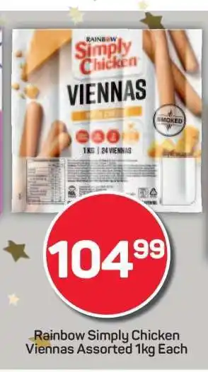 Rainbow Simply Chicken Viennas Assorted 1kg Each promotion at Pick n Pay