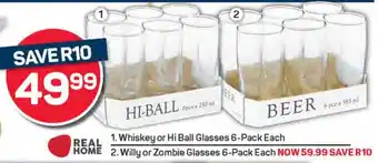 Real Home Whiskey or Hi Ball Glasses promotion at Pick n Pay