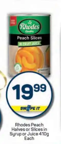 Rhodes Peach Halves or Slices in Syrup or Juice 410g Each Discount at Pick n Pay