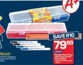 This special is available in various stores, view all products to get the cheapest Rite Box Pencil Case with Tray Assorted Colours Each. If you'd like to find out whether this product has a bigger discount in another store, check the category 'Grocery stores'. You may also find these specials interesting: Penflex Rite Box Pencil Case with Tray Assorted Colours, Butterfly 33cm Eva Pencil Case Assorted Colours Each & Penflex Rite Box Pencil Box.