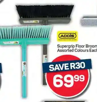 This special is available in various stores, view all products to get the cheapest Supergrip Floor Broom. If you'd like to find out whether this product has a bigger discount in another store, check the category 'Grocery stores'. You may also find these specials interesting: ADDIS Floor Broom, SPAR goodliving Floor Broom & Eco Wet Mop, Floor Broom or Dustpan and Brush Set Each.