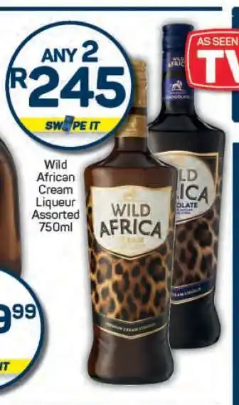 This special is available in various stores, view all products to get the cheapest Wild African Cream Liqueur Assorted 750ml. If you'd like to find out whether this product has a bigger discount in another store, check the category 'Grocery stores'. You may also find these specials interesting: AFRICAN DEW CREAM LIQUEUR, African dew cream liqueur & AFRICAN DEW CREAM LIQUEUR.