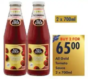 This special is available in various stores, view all products to get the cheapest All Gold Tomato Sauce. If you'd like to find out whether this product has a bigger discount in another store, check the category 'Grocery stores'. You may also find these specials interesting: All Gold Tomato Sauce-700ml, All Gold Tomato Sauce & All Gold Tomato Sauce.