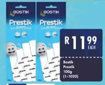 This special is available in various stores, view all products to get the cheapest Bostik Prestik. If you'd like to find out whether this product has a bigger discount in another store, check the category 'Grocery stores'. You may also find these specials interesting: Bostik Prestik 83031-100g, Bostik Prestik & Bostik Prestik.