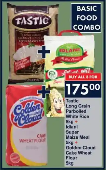 Tastic Long Grain Parboiled White Rice 5kg + Idlani Super Maize Meal 5kg + Golden Cloud Cake Wheat Flour 5kg
