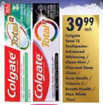 Now on special at President Hyper: Colgate Total 12 Toothpaste Advanced Whitening/ Clean Mint/Charcoal Deep Clean/Gum Health/Vitamin C/ Breath Health/ Max White ✅ Valid from 16-12 to 4-01.