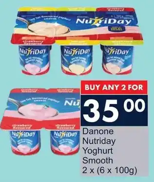 This special is available in various stores, view all products to get the cheapest Danone Nutriday Yoghurt Smooth. If you'd like to find out whether this product has a bigger discount in another store, check the category 'Grocery stores'. You may also find these specials interesting: Danone Nutriday Yoghurt Smooth, Danone Nutriday Smooth Yoghurt & Danone NutriDay Low Fat Smooth Yoghurt.