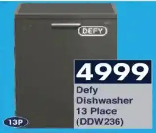 This special is available in various stores, view all products to get the cheapest Defy Dishwasher 13 Place. If you'd like to find out whether this product has a bigger discount in another store, check the category 'Grocery stores'. You may also find these specials interesting: Defy 13 Place Dishwasher DDW 242 (836126), Defy 13 Place Dishwasher DDW 242 & Hisense 15 Place Dishwasher Silver H15DSL.